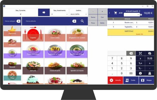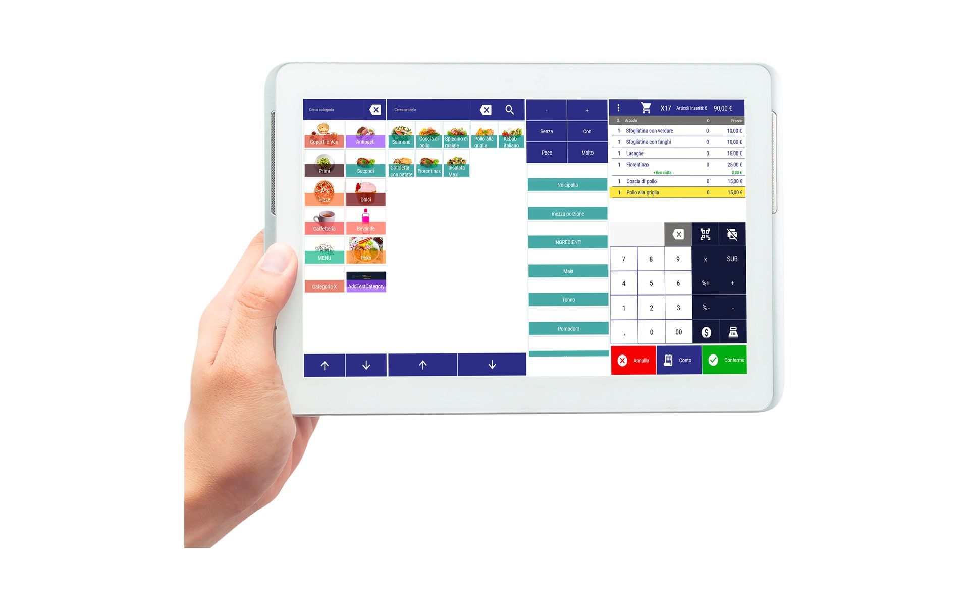 Tra le funzionalità principali troviamo la gestione delle comande tramite palmari, monitor cucina touch per il controllo delle preparazioni, sistemi di prenotazione integrati con piattaforme come TheFork e Google, e la possibilità di emettere scontrini digitali direttamente al tavolo.